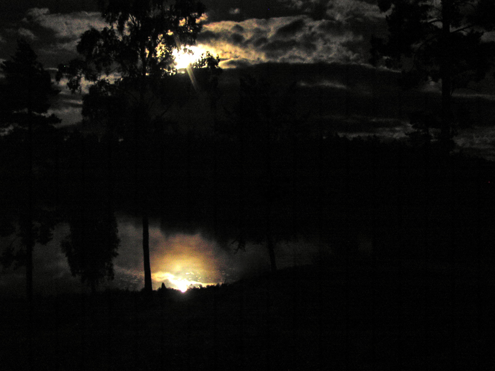 Træerne stod rundt om gårdspladsen, og i mørke er der mange skygger fra lommelygtens skær:-)