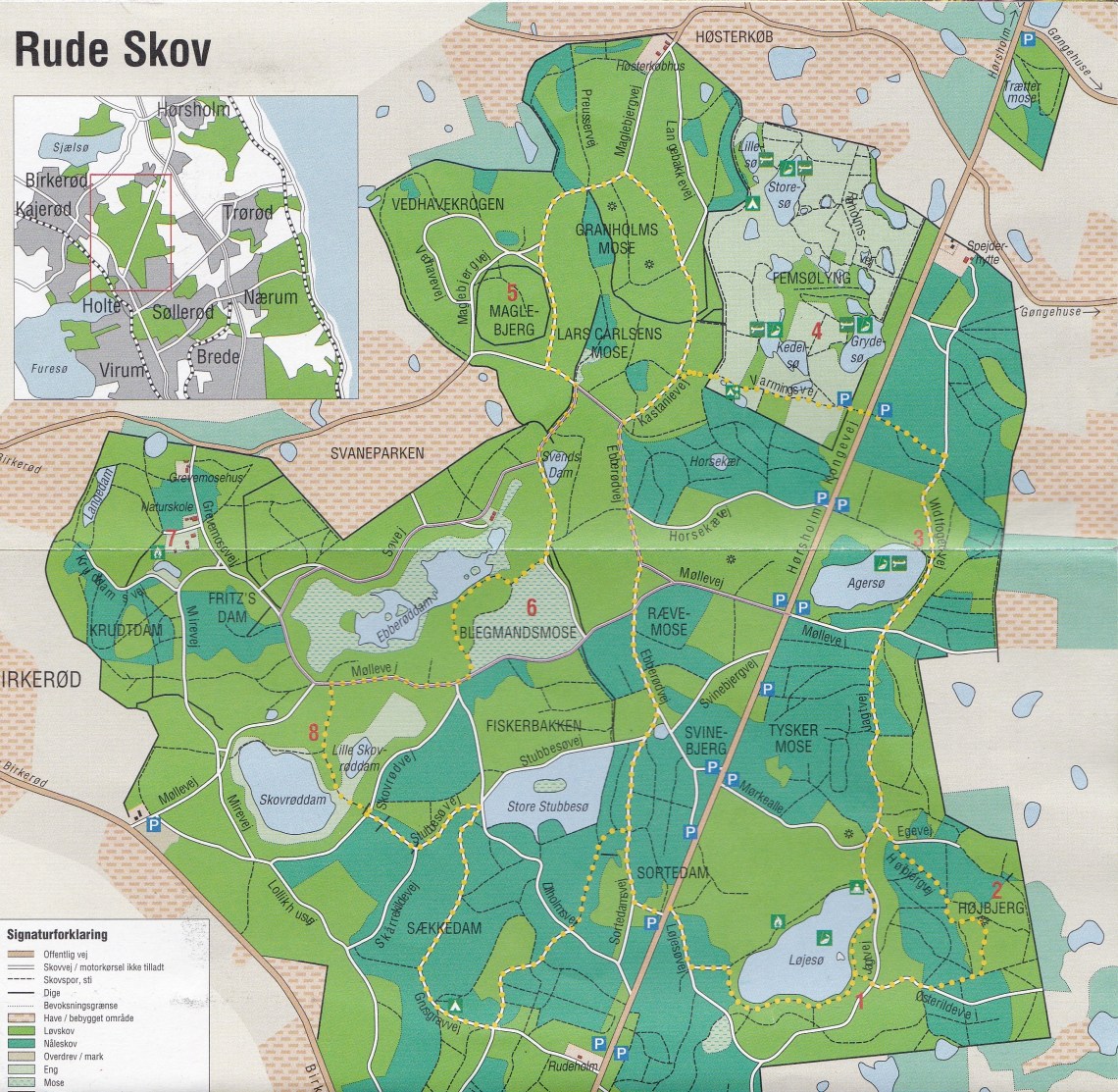 Rute, afmærket med rødt til Højbjerg fra Kongevejen