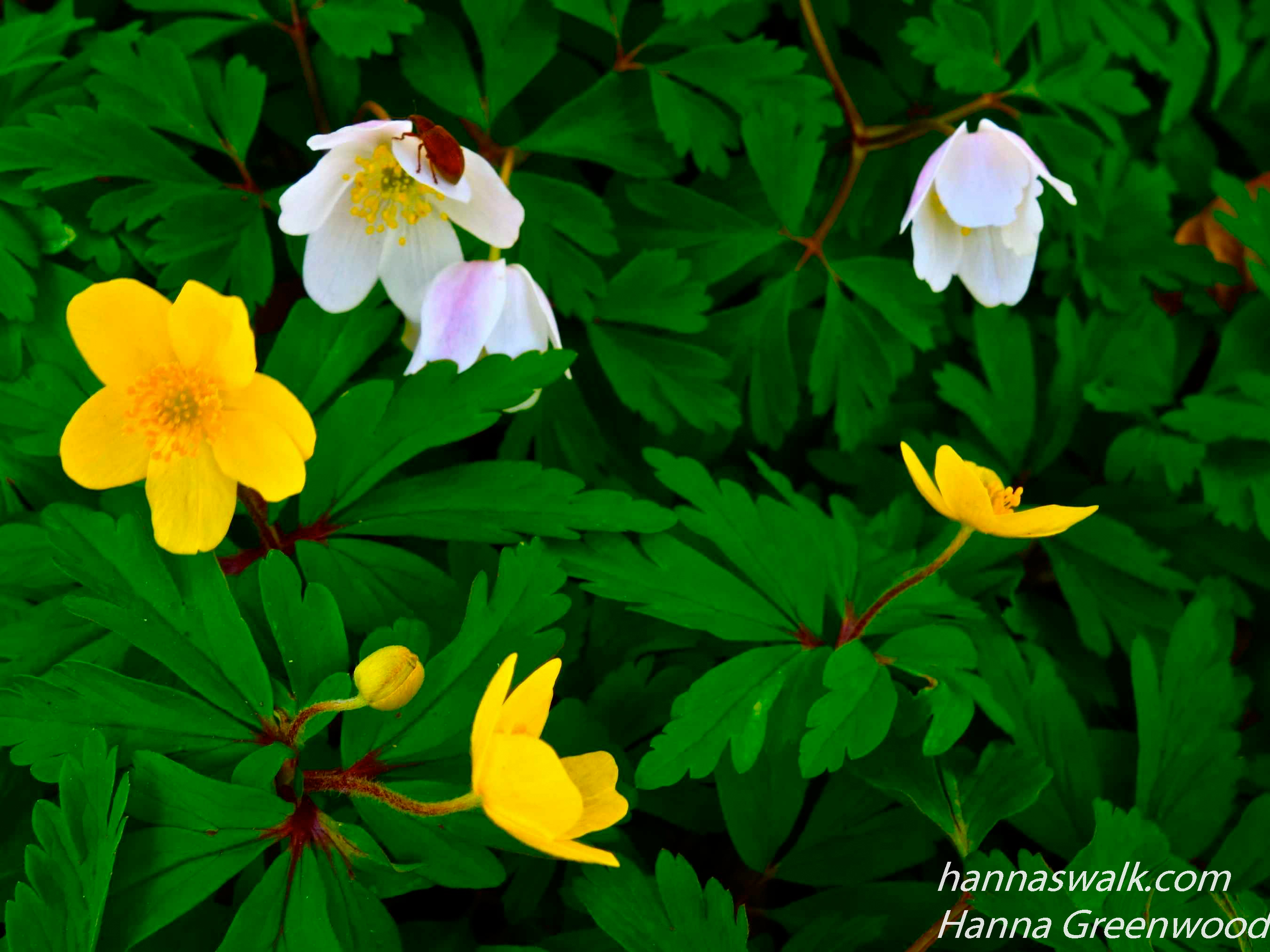 Hvide og gule anemoner