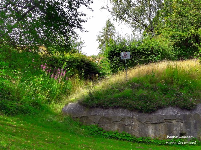 I en lavning mellem murværk, buske og træer ligger en tørgrav, der vil eksponere fjenden og gøre ham til et let bytte.