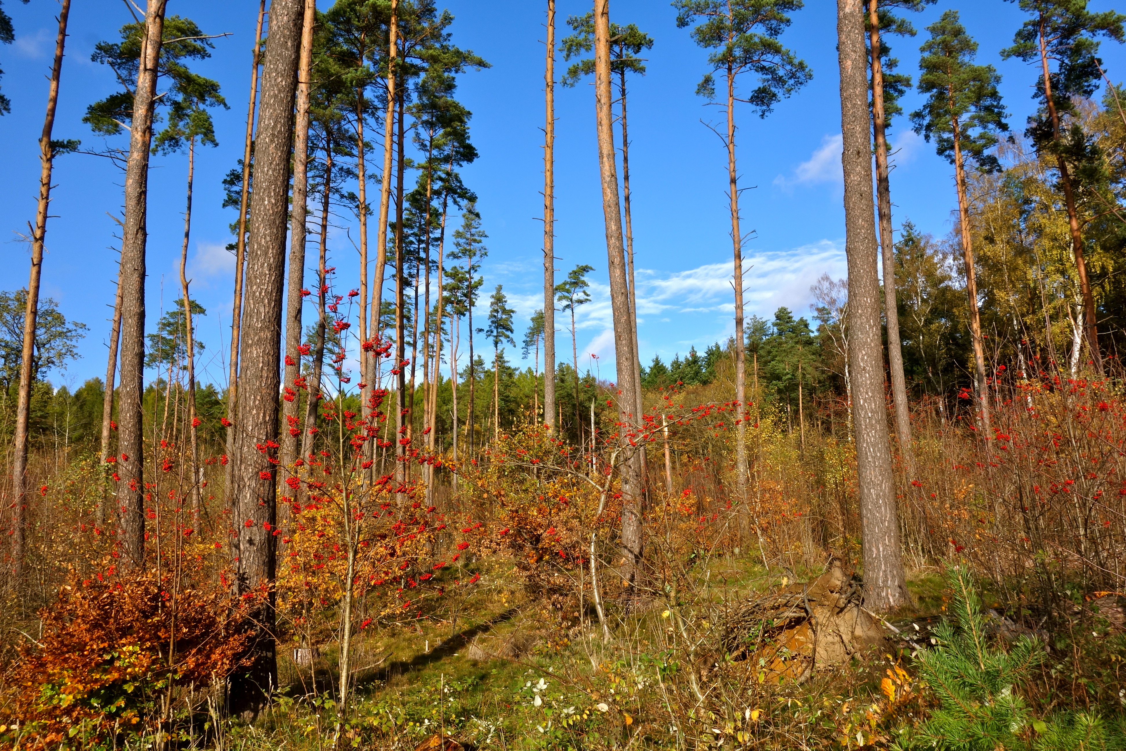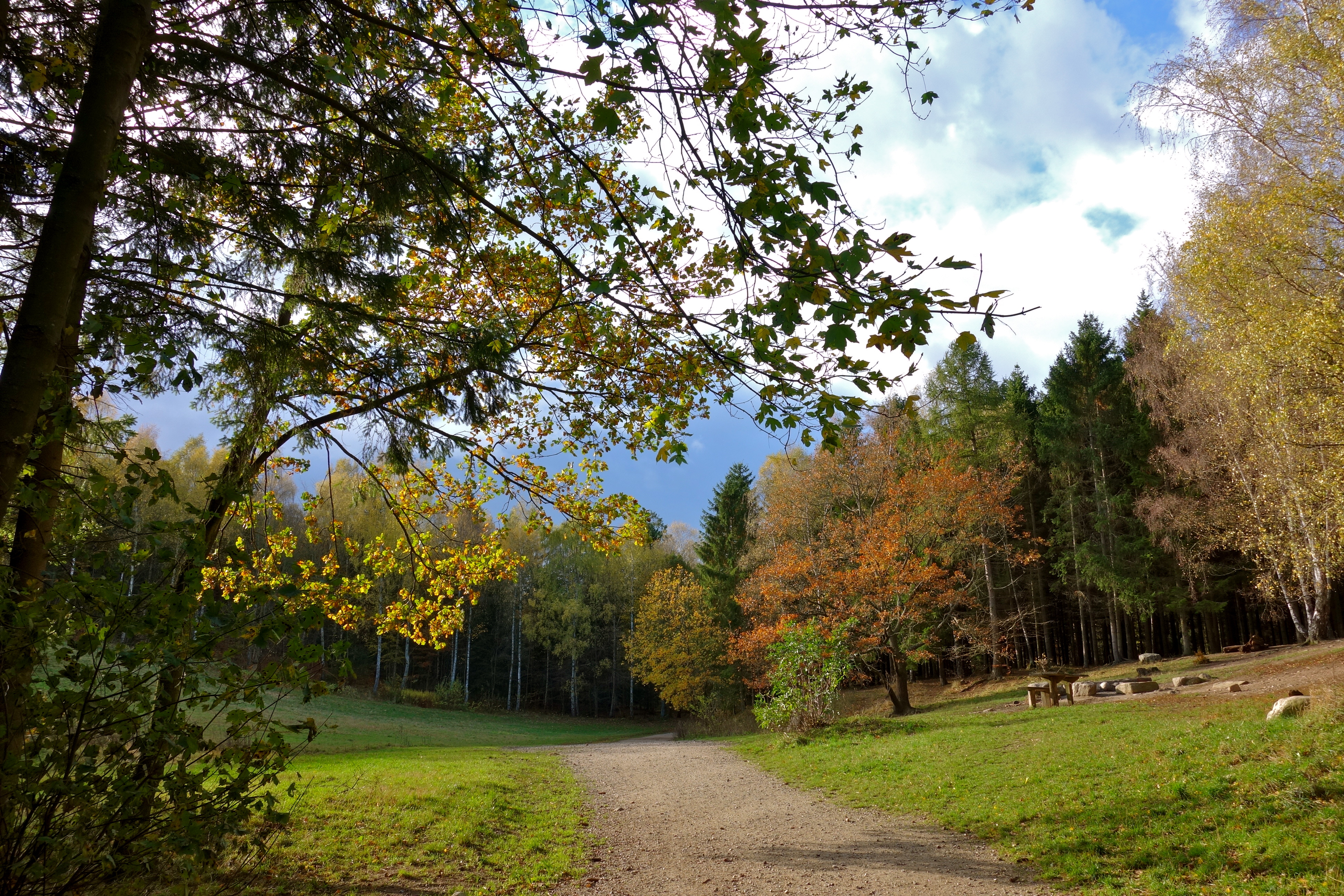 Dagen efter stormen gik jeg gennem Geel Skov. Der var ingen vind. Himlen var blå og efterårsfarverne aftegnede sig skarpt mod den smukke blå himmel. Det var stilhed efter storm.